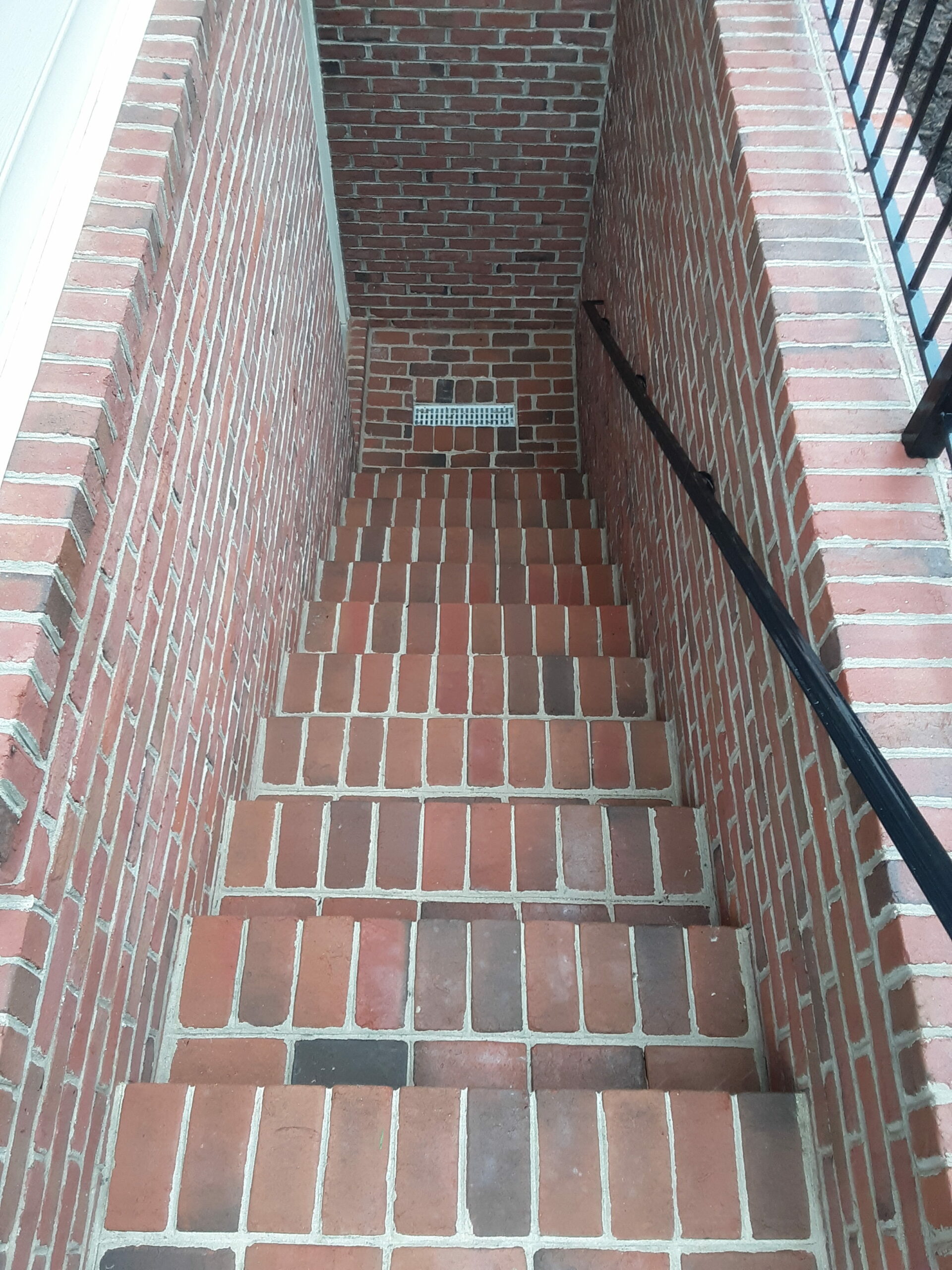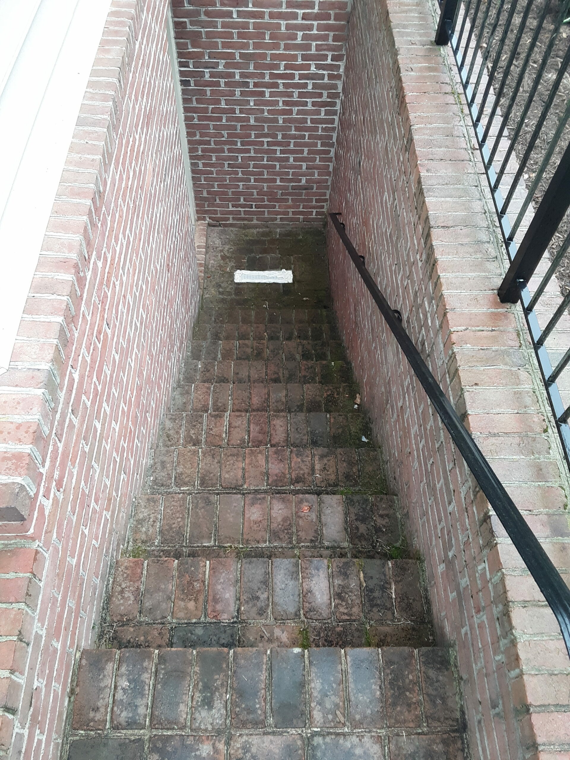 After power washing basement brick stairwell