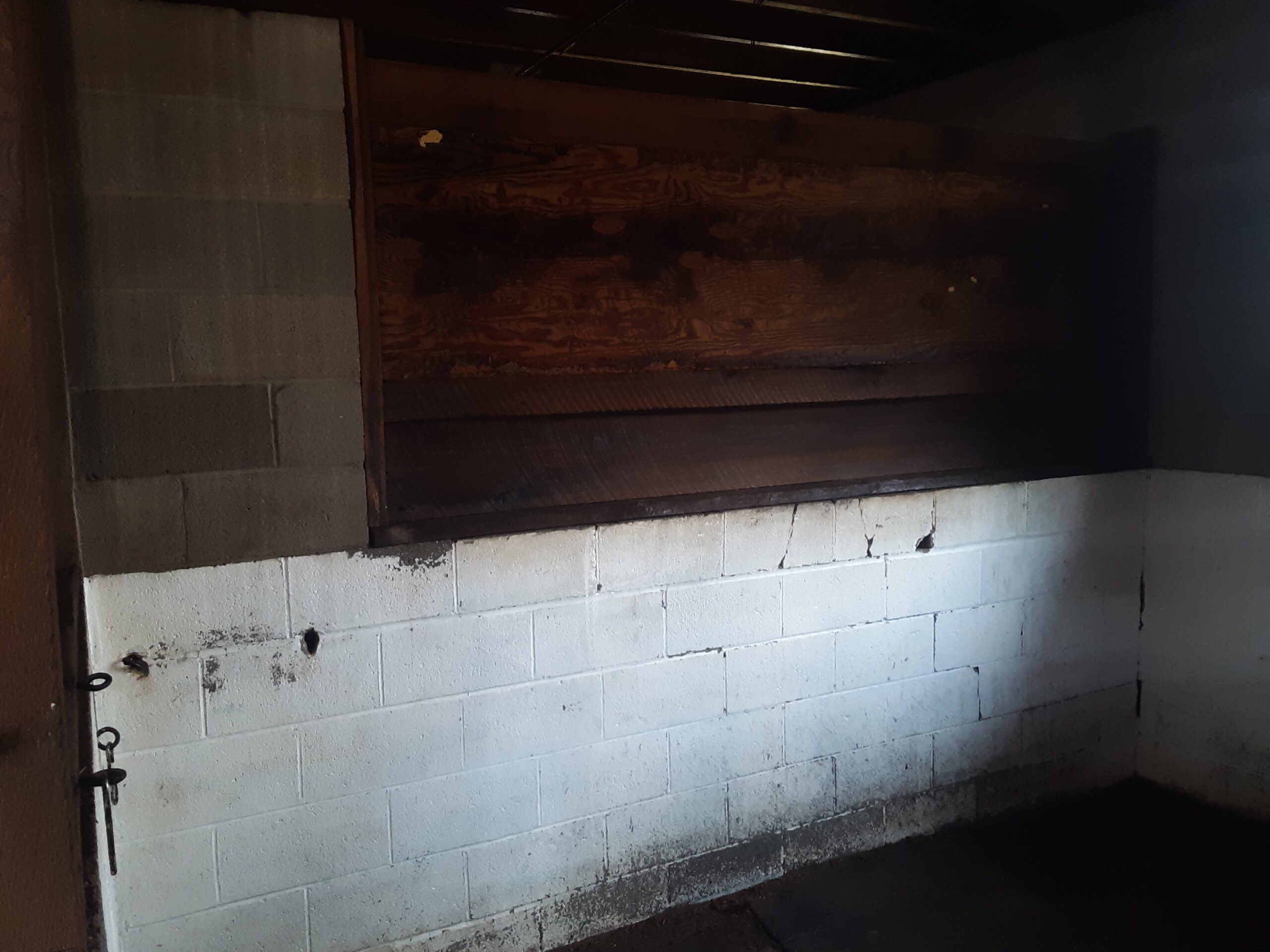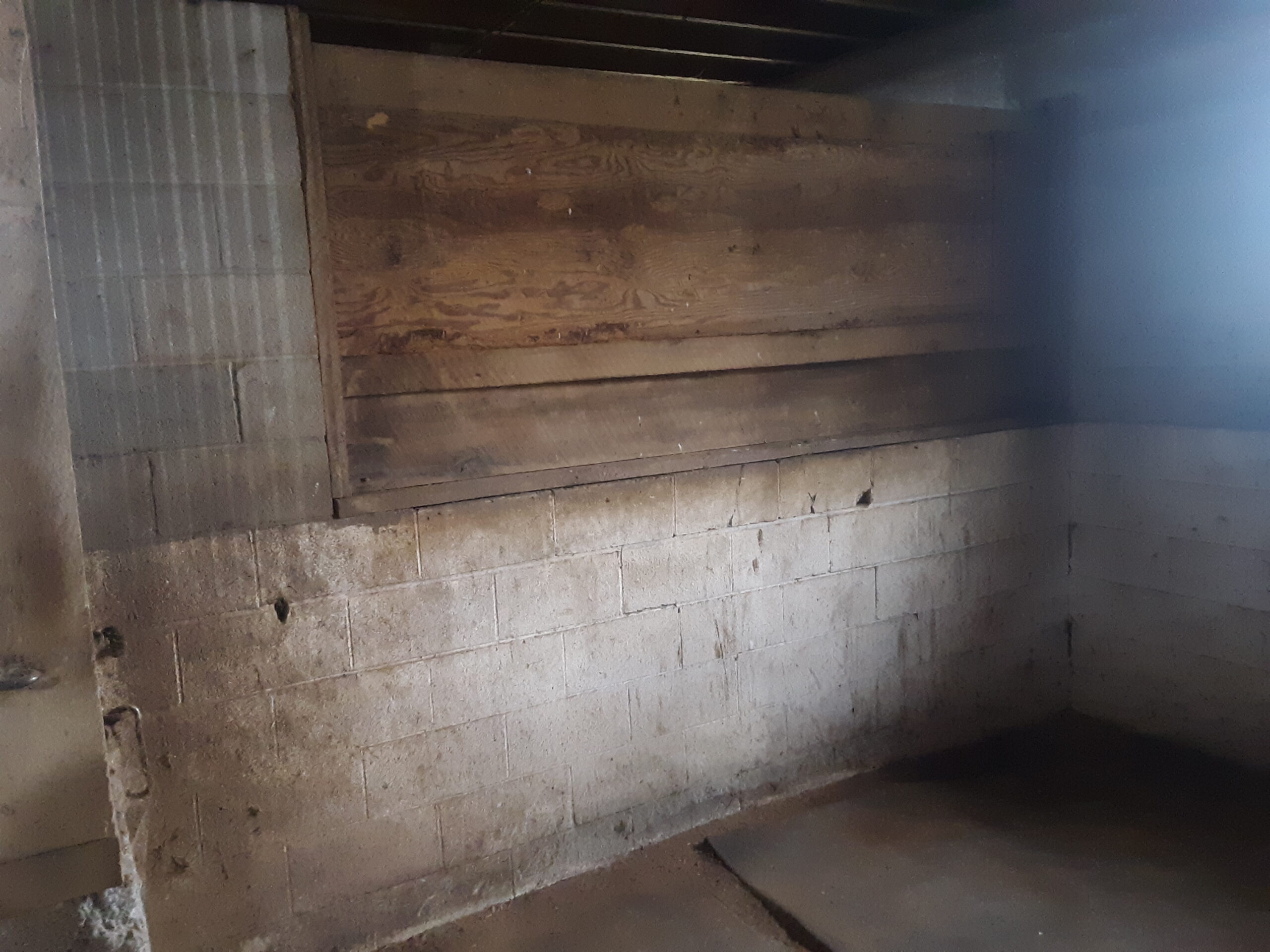 Brick basement stairwell mildew and moss before power wash