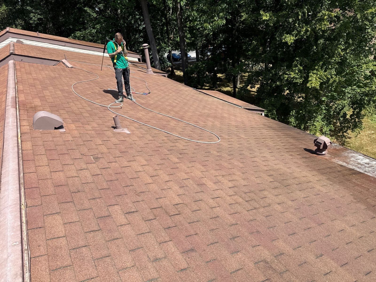 Our soft wash cleaning brought the apartment roof back to a like-new condition.