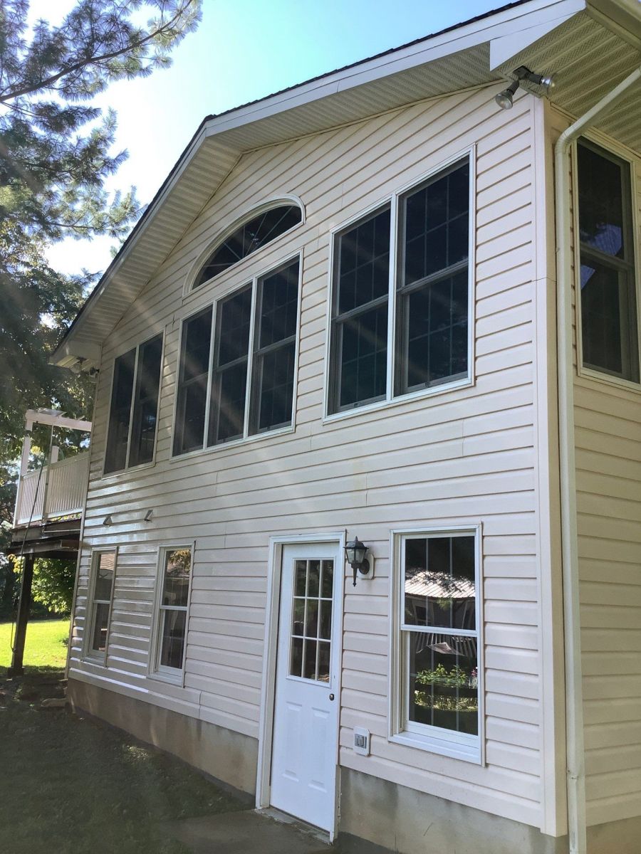 Shiny, refreshed vinyl siding after professional soft wash cleaning